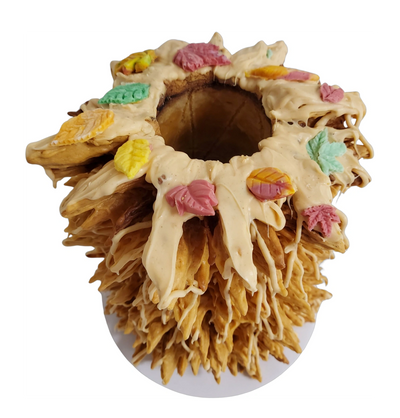 A tree cake has been around for over 100 years in Lithuania and similar cakes in Eastern Europe. It is a dense, not too sweet cake batter made with fresh ingredients that is baked on a rotating spit in an oven over fire. While you rotate, the cake batter is poured over and over. It is a long process that makes beautiful branched hollow tree cakes. Each cake is handcrafted for you. It is the center piece on any table for any occasion with different flavors to choose from. It is a dessert that you will not feel guilty eating. We use natural ingredients and high quality pure chocolate for our drip.